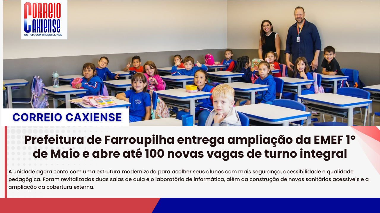 Na manhã desta segunda-feira (23), a Prefeitura de Farroupilha oficializou a entrega das obras de reforma e ampliação da EMEF 1º de Maio. O ato marca um avanço estratégico na política de educação em tempo integral do município. A unidade agora conta com uma estrutura modernizada para acolher seus alunos com mais segurança, acessibilidade e qualidade pedagógica.